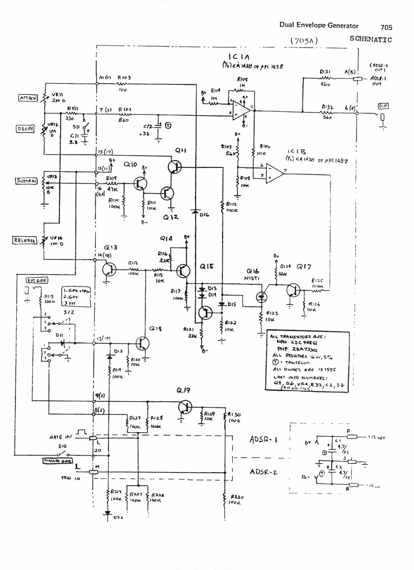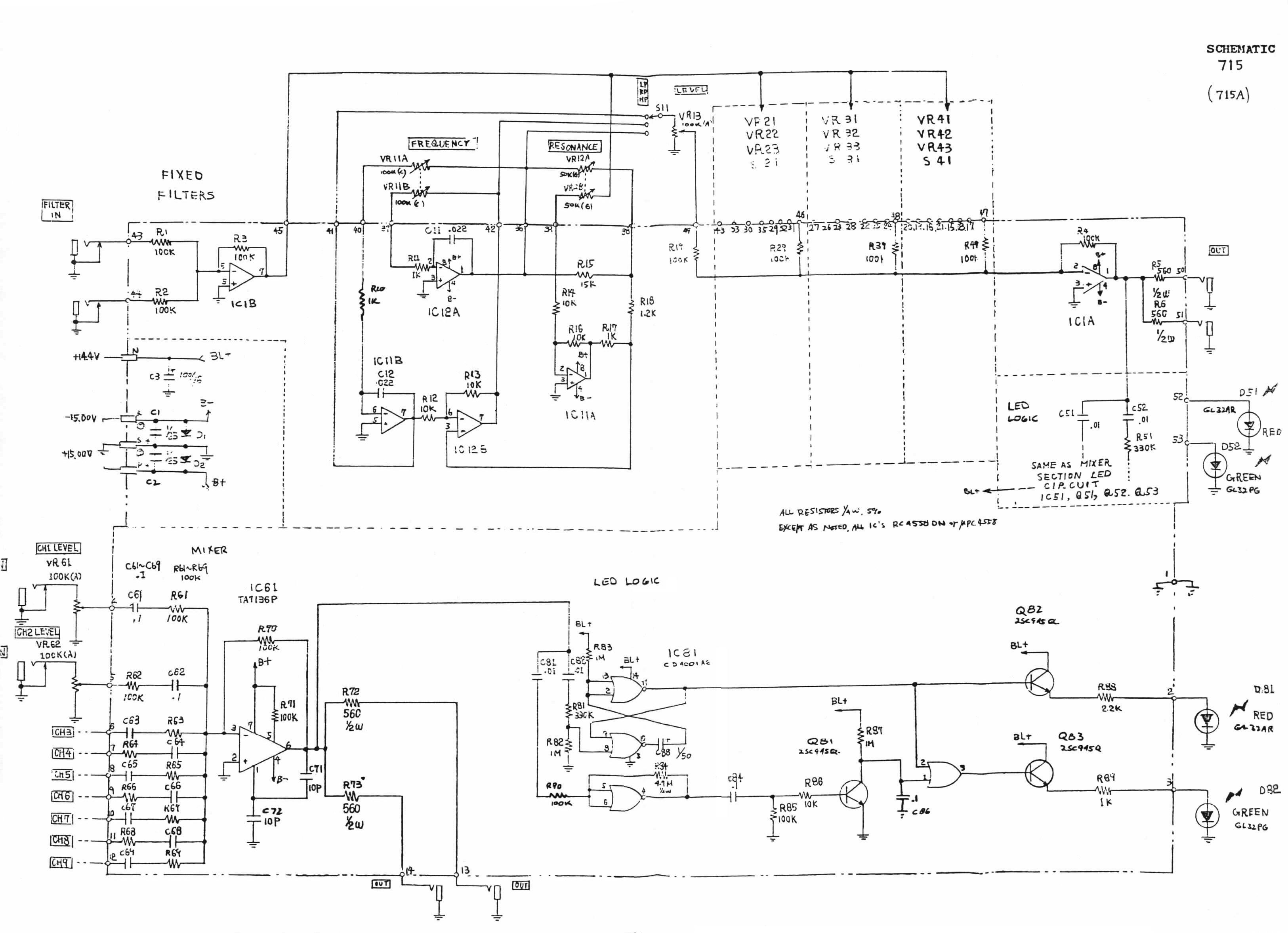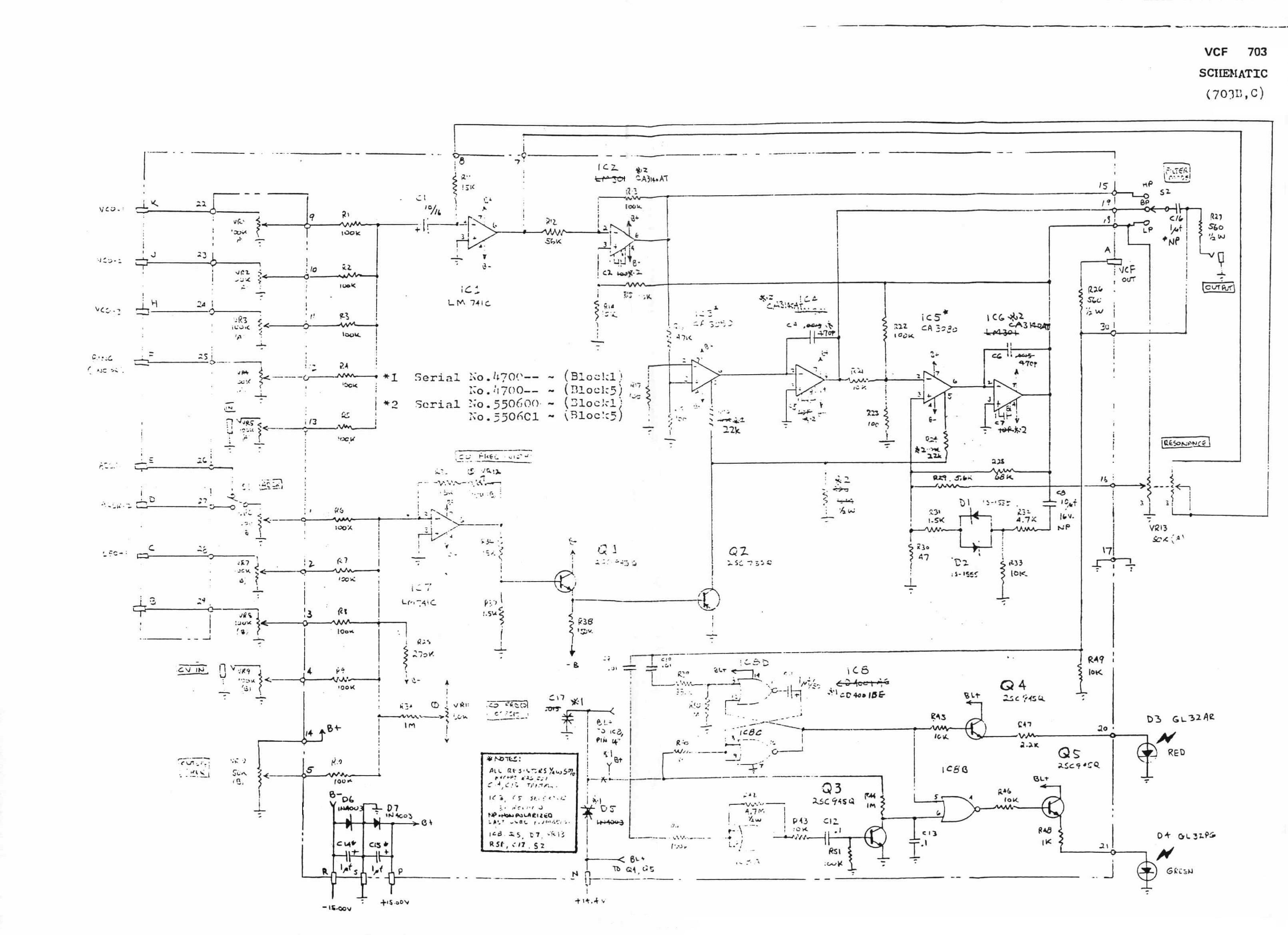 This is a list of the modules from the service manual and the links to the scans of the corresponding schematics. REMARK: I do not own a System 700 and never owned one. I only host theses scans of the System 700 on my web site. I can NOT ANSWER any question like "can you tell me the partnumber of switch blah?" or "what is the pinout of connector XYZ?". All I could do is having a look at these files. And this is, what you can do too. ;-)
